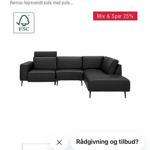 Sofaen har indbygget motor som kan lave støtte til benene i den modsatte ende af puffen