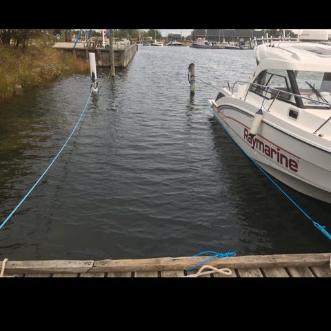 Andelsbevis til en plads i korsør Lystbådehavn. Der er både flydebroer og faste broer.