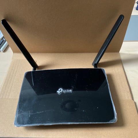 Routeren er som ny, stadigvæk med beskyttelsesfolie på.