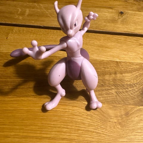 Pokémon Garchomp actionfigur i lilla og orange farver. Figuren har bevægelige led og detaljer som tænder og vinger. Egnet til samling eller leg.