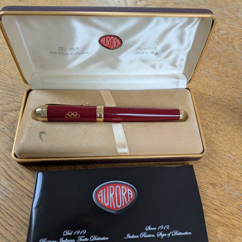 Gloria fyldepen Bordeaux med gulddetaljer og kasse