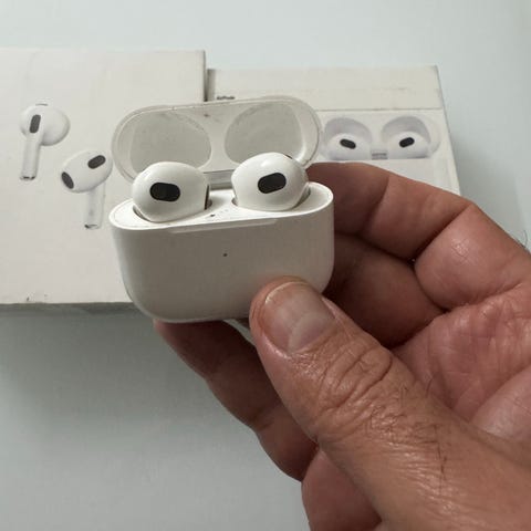 Sælger Apple AirPods 3 med normal funktionalitet (parring, opkald, musik), men bemærk at lydkvaliteten er reduceret i forhold til helt nye / perfekt stand – mindre bas og detaljer kan være svagere. Passer godt til almindelig brug, podcasts eller som reserve/backup.