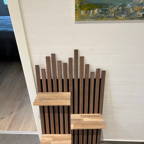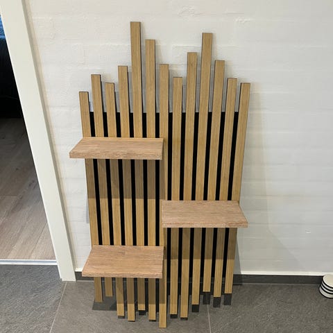 • Minimalistisk design: Hylden har et rent, nordisk look, der komplementerer trælamellerne perfekt.