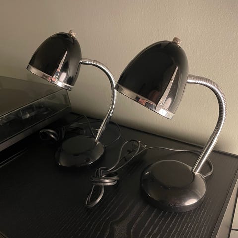 Sælger denne fine bordlampe fra Lisbeth Dahl i sort og blank krom design.