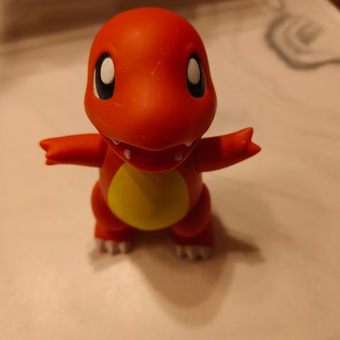 Pokemon stor Dragonite figur i gul og orange farve. Figuren har detaljer som vinger, hale og kløer.