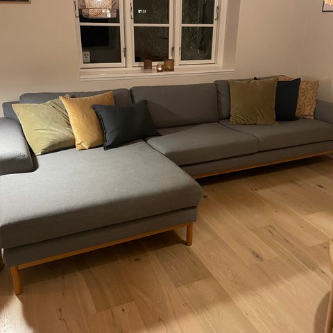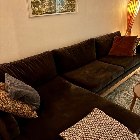 Sofa/Chaiselong fra Sofacompany i Matt Beige velour,model Vivica,puder i fløjl.