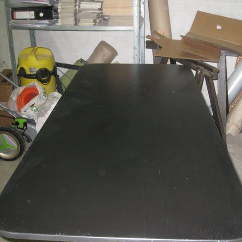 Computerbord med sideplade i bøgelaminat og hvidt metalstel. Næsten som nyt. Meget velholdt.
