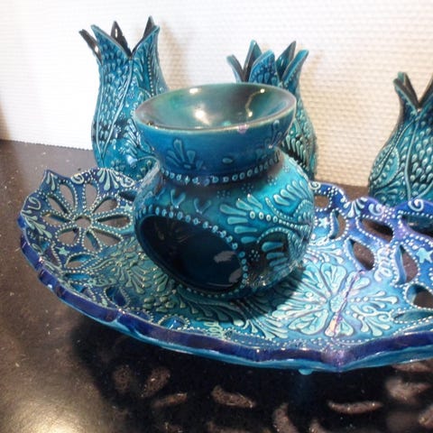 Bord dekration, Hvid med roser og stort sølvfad special dekration med glas til lys. se billeder fadets Dia. er 40 cm.