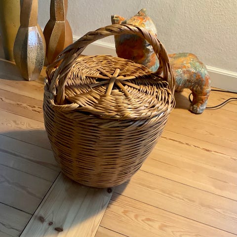 Stor flettet opbevaringskurv med låg
