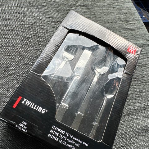 WMF bestik sæt bestående af kniv, gaffel og ske i rustfrit stål. Designet til brug ved måltider og daglig borddækning.