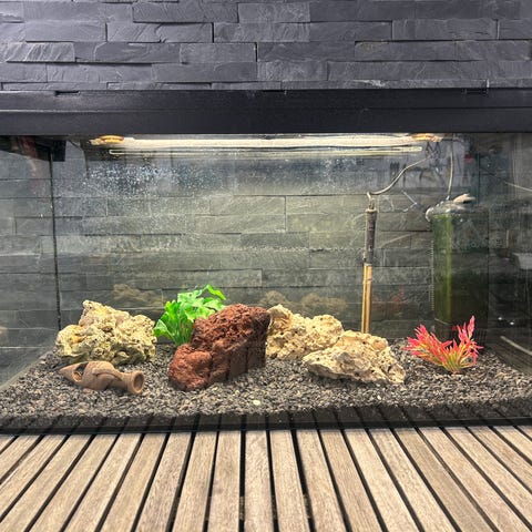 Der er mulighed for at indrette akvariet efter egen smag med forskellige farver grus, figurer, kunstige planter osv. fra "Stattekisten" så længe lager haves. Jeg har også Guppyer og et par Kugle fisk samt ægte planter der kan følge med.