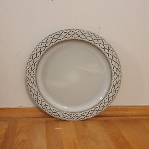 Mål: Ø 22,2 cm. H 2,1 cm. Vægt 475 gram