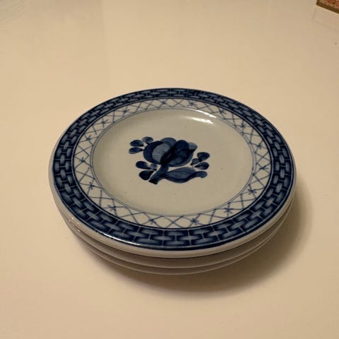 Royal Copenhagen/Alumina fajance mindre tallerkner, blå og hvidt mønster. Designet er klassisk og pris er for begge 2. Afhent i Køge eller sendes. Tlf 40500544
