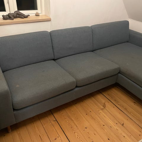 Flot og komfortabel Scandinavia 3-personers sofa med chaiselong sælges. Sofaen har egetræsben, og der medfølger 1 Zyl-puf.