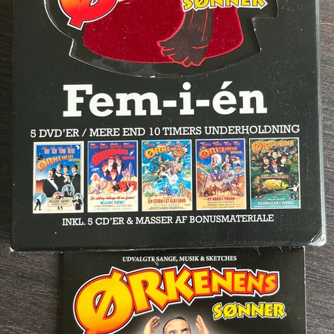 Ørkenens Sønner Fem-i-én DVD-samling indeholder 5 film med skuespillere som Mads Olsen, August Kiehn, Leonard Hoffod og Søren Pilmark. Samlingen byder på over 10 timers underholdning med fem forskellige film samlet i ét sæt.