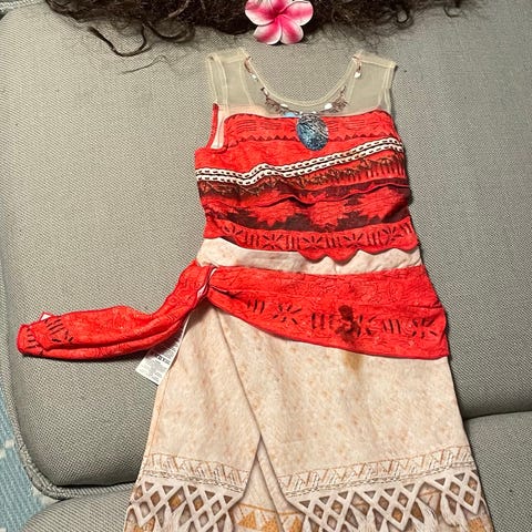 Vaiana kostume. Str. 5-6 år (110-116 cm). Fin stand. Halskæde kan følge med.