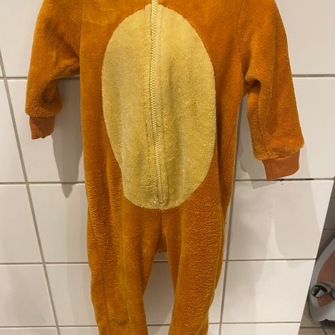 Jumpsuit hyggedragt / Børnekostume, som skal forstille en brun bjørn. Som nævnt kan dragt både bruges som udklædning til fastelavn som kostume. Men den kan også bruges som en hygge dragt. Min søn har primært brugt den som hygge dragt. Dertil har dragten en hætte på. Dragten har været brugt, men er stadig i fin stand.