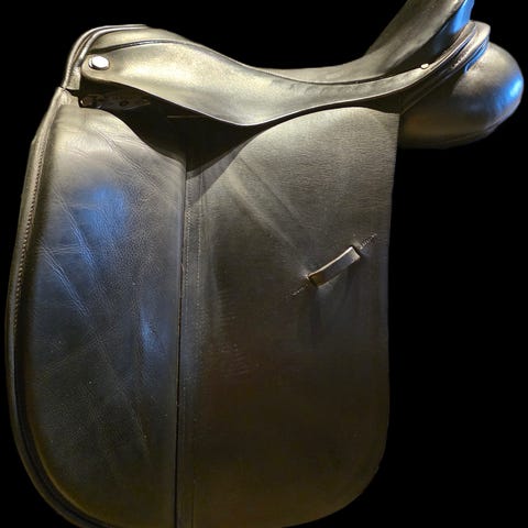 Super fin Albion SLK II Adjusta dressursadel. M-W-17’. Sadlen har dybt sæde, kort bæreflade, justerbar bom. Købt i maj 2022 og brugt frem til maj 2025. Velholdt og i virkelig fin stand. Nypris 24.000 kr.
