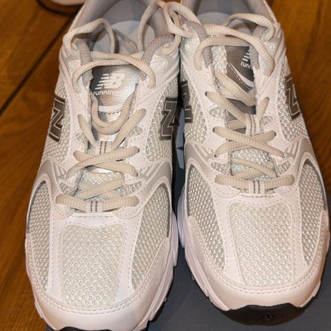 New Balance 550 sneakers i størrelse 40. Skoene er hvide med beige detaljer og har en kombination af materialer, der giver et klassisk og sporty udseende. Velegnet til daglig brug.