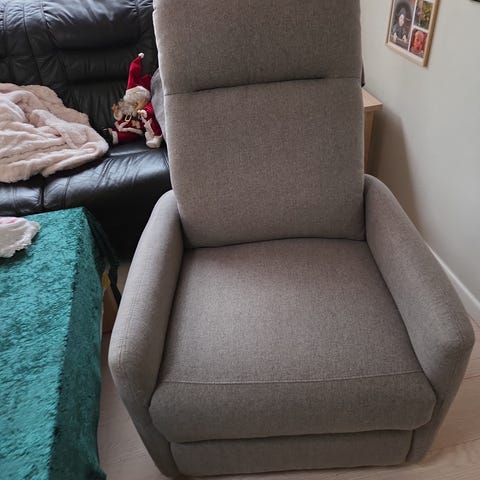 Helt ny elektronisk lænestol med god fodstøtte. Den er købt i JYSK 16 Dec. 2025 og jeg har kvitteringen, så der er fuld garanti. Brugt meget lidt (2-3 gange).