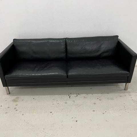 Eksklusiv 3-personers sofa, model MH276, designet af Mogens Hansen. Sofaen er udført i Loke læder, gruppe 2, i farven Black med elegante ben i børstet stål.