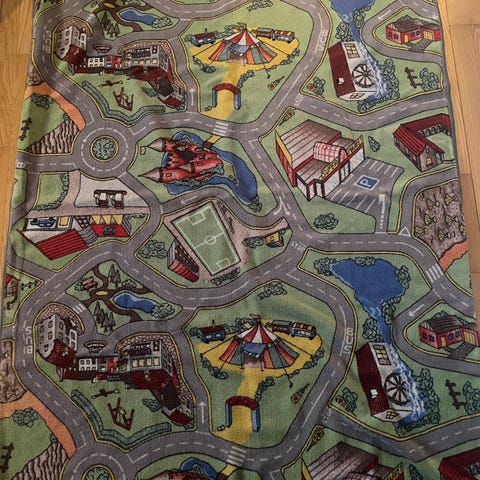Legetæppe med mulighed for at lege hus, indretning og strandtur. 100x150 cm.