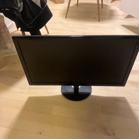 Asus VW266H 26 tommer skærm med flere tilslutningsmuligheder inklusive HDMI, DVI og VGA. Skærmen har et standard design med rund fod og sort finish.