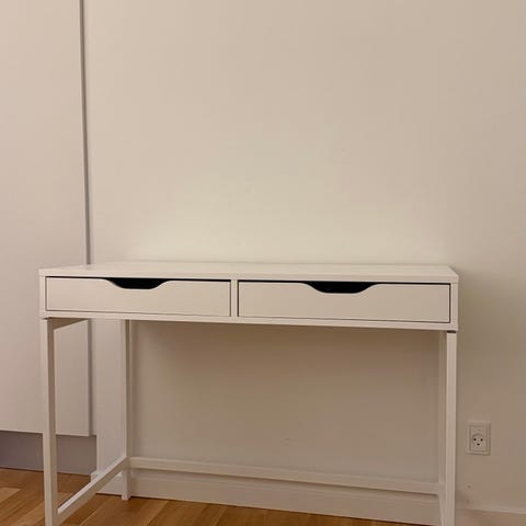 IKEA Aage Petersen skrivebord i hvid. Bordet har et enkelt og funktionelt design med en rektangulær bordplade og åbent rum under til opbevaring eller benplads.