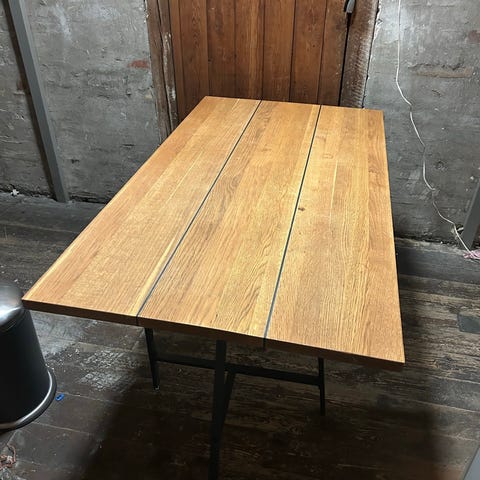 Massivt plankebord som kan bruges som lille spisebord eller kontorbord.