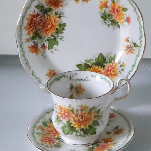 Vintage tesæt Queen's Fine Bone China Special Flower Series Oktober England.