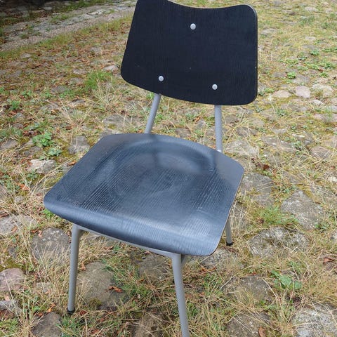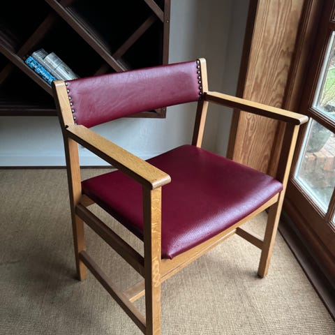 Stolene kan ombetrækkes eller kan sagtens bruges som de er, med retro stof på sædet.