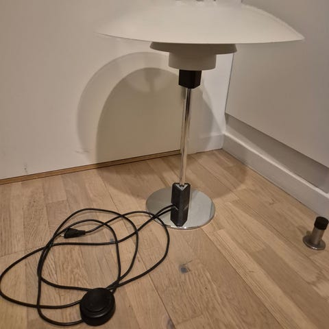 Gammel Poul Henningsen bordlampe med kobber skærme, mærket pat appl sælges. Sælges eventuelt uden skærme. Gammel orginal afbryde med “trompet” bakelit