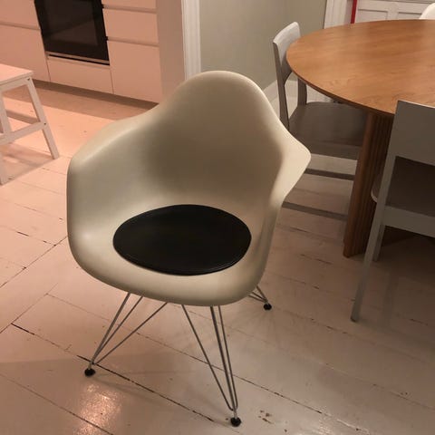 Mange år gammel Charles Eames stol. Der er lidt ridser og skrammer.
