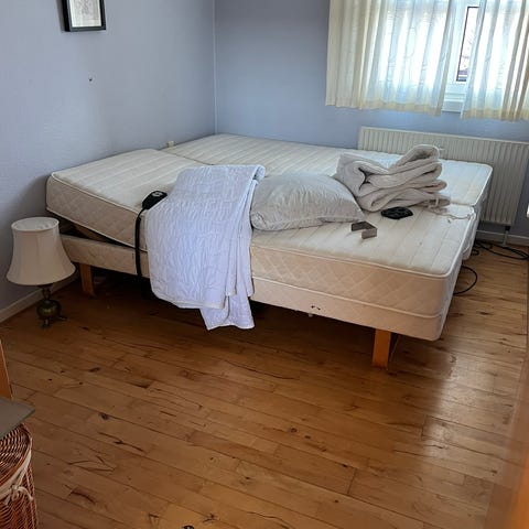 To elevationssenge uden madrasser sælges. Fungerer godt.