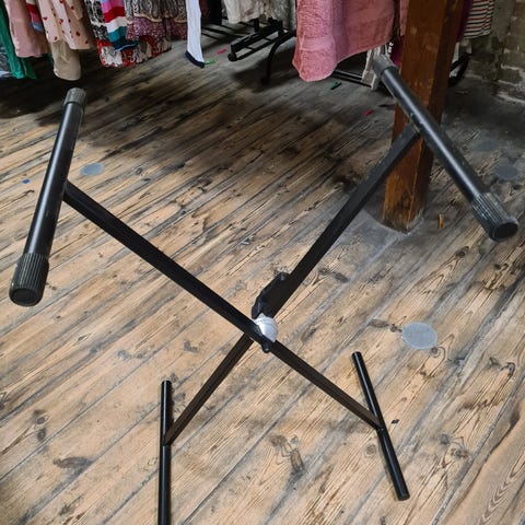 Keyboard stand, adjustable in many ways.