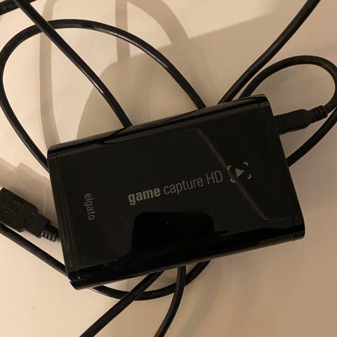 Elgato HD60 Game Capture enhed til optagelse og streaming af gameplay i HD-kvalitet. Enheden er sort og leveres med tilhørende kabler. Den blev aldrig brugt brugt.