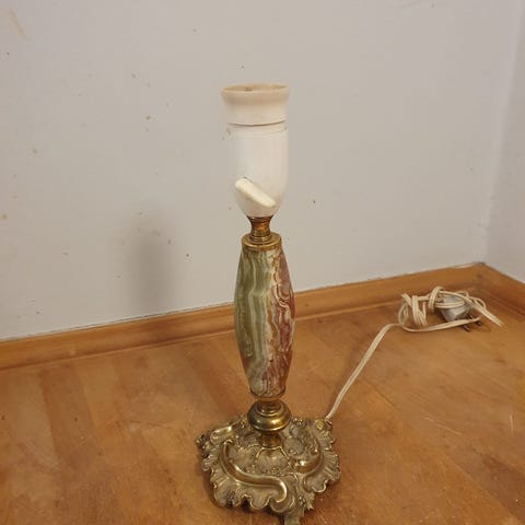 messing på marmorfod, uden lampeskærm, omkring ½ meter høj