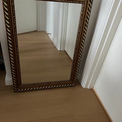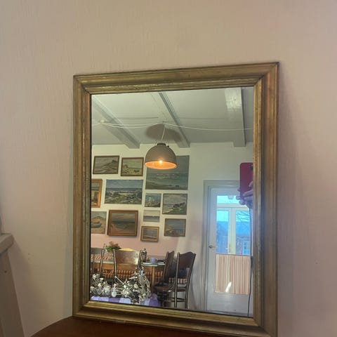 Ældre flot spejl med guldfarvet ramme