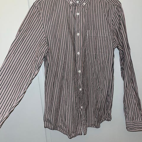 • Blå/grøn, hvid-stribet skjorte