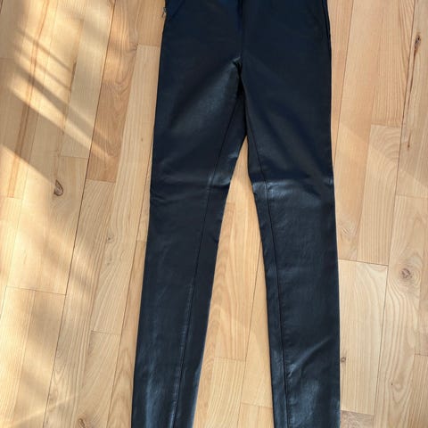 Sorte bukser med sorte palietter, elastikbælte i livet, med sort for. Mangler nogle palietter bagpå ved enden.