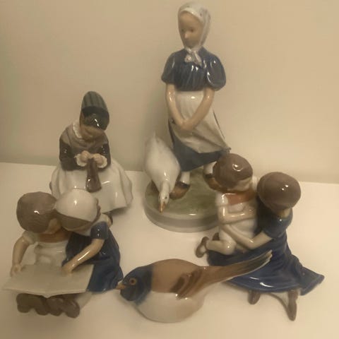 Royal Copenhagen figurer af forskellige hunde og fugle i porcelæn
