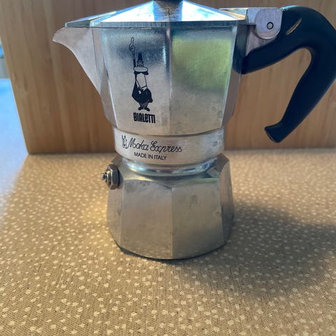 Stor Bialetti mokkabrygger. Har brugt den få gange, men må sande at jeg kun bruge de lidt mindre.