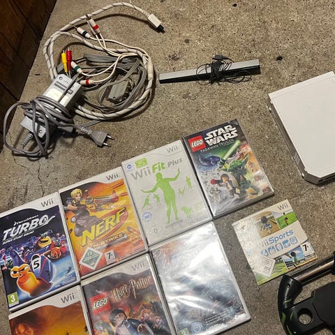 Wii pakke i flot stand fungere perfekt er gennem testet der medfølger 2 Wii remotes 2 nunchuks 2 motion plus adaptor sensor bar Wii2hdmi adaptor så maskinen kan køre 1080p over hdmi på moderne fladskærme 1 strømforsyning 1 av kabel og til sidst 2 beskyttere til Wii remotes og 2 gode spil som også er testet og virker perfekt obs prisen er fast bud modtages ikke kan sendes meget forsvarligt indpakket kan afhentes 8230 Åbyhøj kan handles via fiks færdig