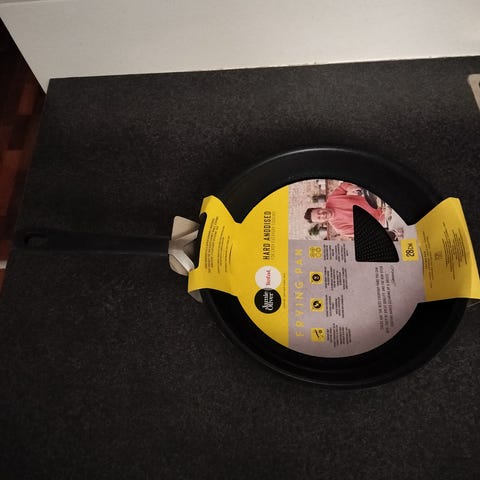 Claus Holm stegepande (28 cm) og Jamie Oliver sauterpande (25 cm). Låg medfølger sauterpande (fik ikke taget foto pt. ! )