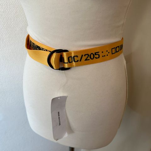 Off-White bælte i gul og sort farve med tekstdetaljer. Fremstillet i tekstilmateriale med sort spænde.