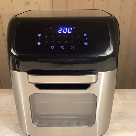Dejlig lille smart Air fryer ovn med alt udstyr til, plader, flere riste, drejekurv og Rotisseri til stege og kylling. B: 35cm D: 37cm H: 35cm - udvendig mål. I virkelig pæn stand.