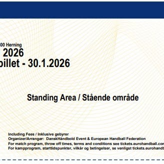 Billetten er en dagsbillet til fredag d. 30/1 til ståområde S3 (indgang 5).