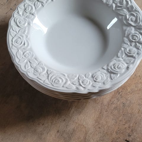 Smukt vintage italiensk service. Tulipan-stel. Fine sarte farver og 100 % sommerstemning. Fra Franco Giorgi / Quadrifoglio. 2 ymerskåle: 7,5 cm høj / 14 cm i diameter. 3 frokosttallerkener: 22 cm i diameter. 5 middagstallerkener: 26,5 cm i diameter. 30 kr. pr. stk. Frit valg. Fin stand - ingen revner eller afslag. Sender gerne. Du kan også hente i Fredensborg eller København.