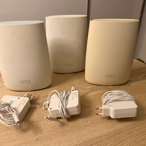 Bestående af Netgear RBR50 router samt 2 * Netgear RBS satelitter.