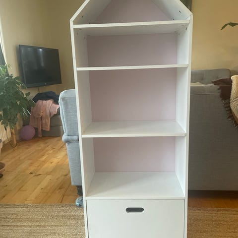 Rigtig flot reol i flotte farver den er let at at flytte rundt med da det hele er lavet i plastik.
